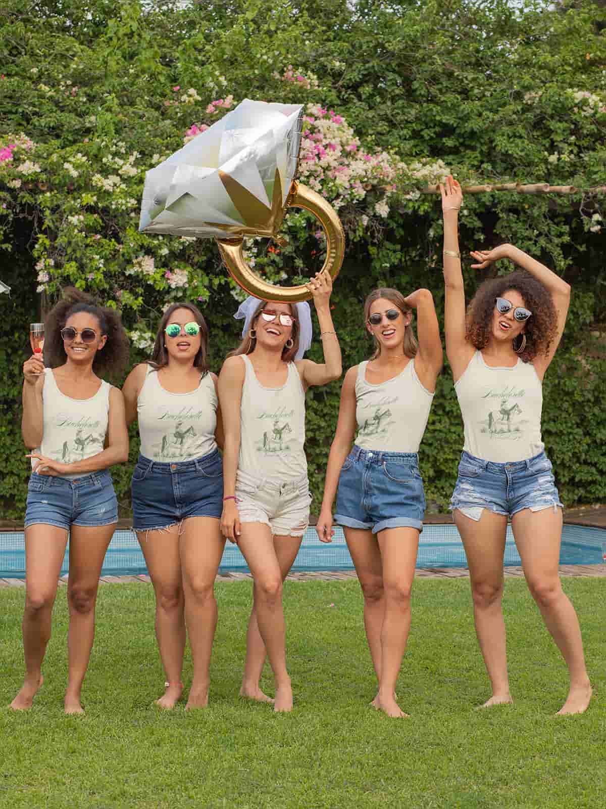 Add sassy slogans, inside jokes and/or custom graphics that are bound to spark laughter. Funny bachelorette shirts can be great for creating epic group videos or photos.