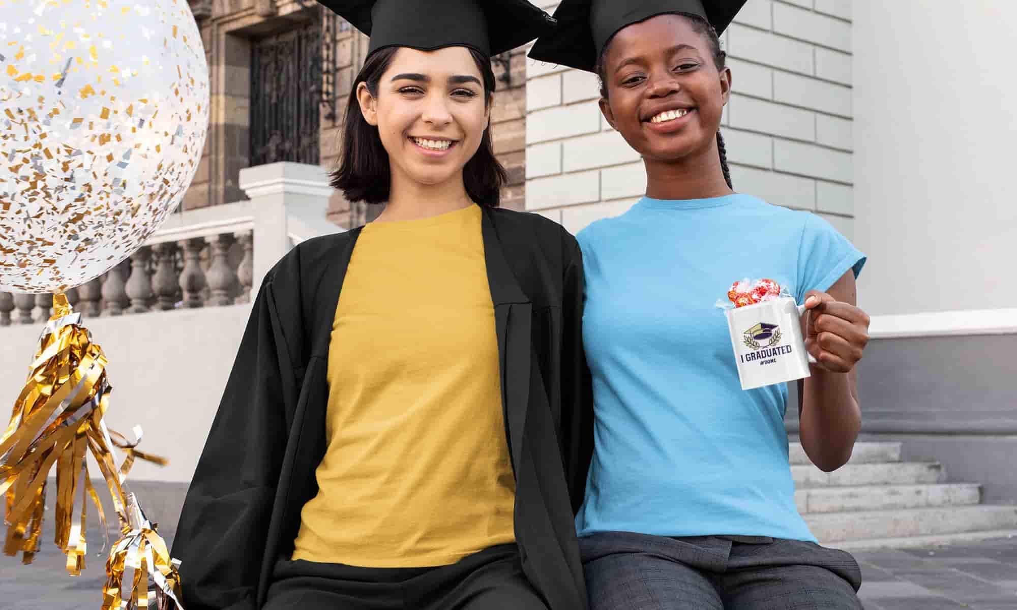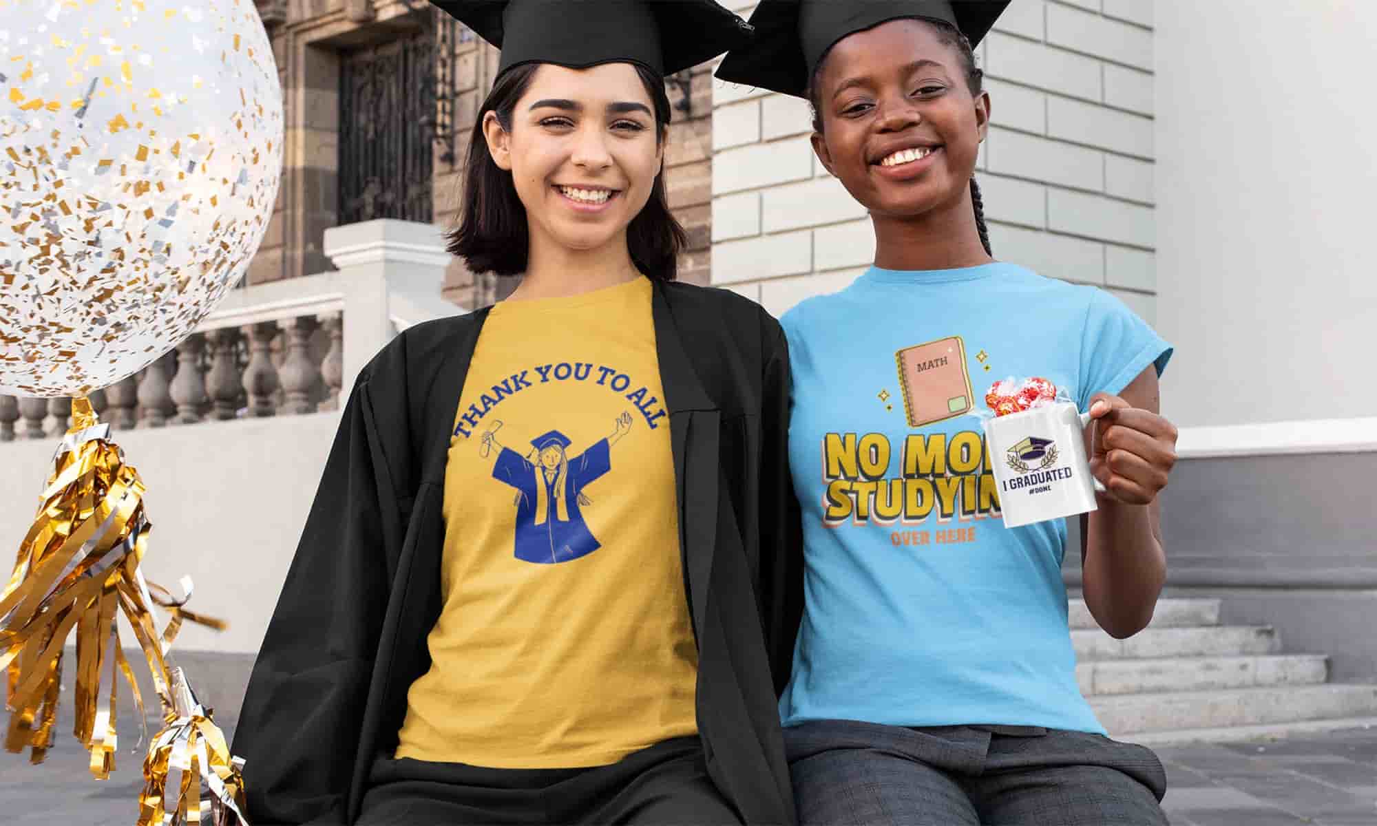 If you need assistance, would like to see some graduation shirt ideas, or need help designing in our design studio, don’t worry. We can help you create the best-customized graduation shirts. We have print-on-demand t-shirt experts waiting to assist you.