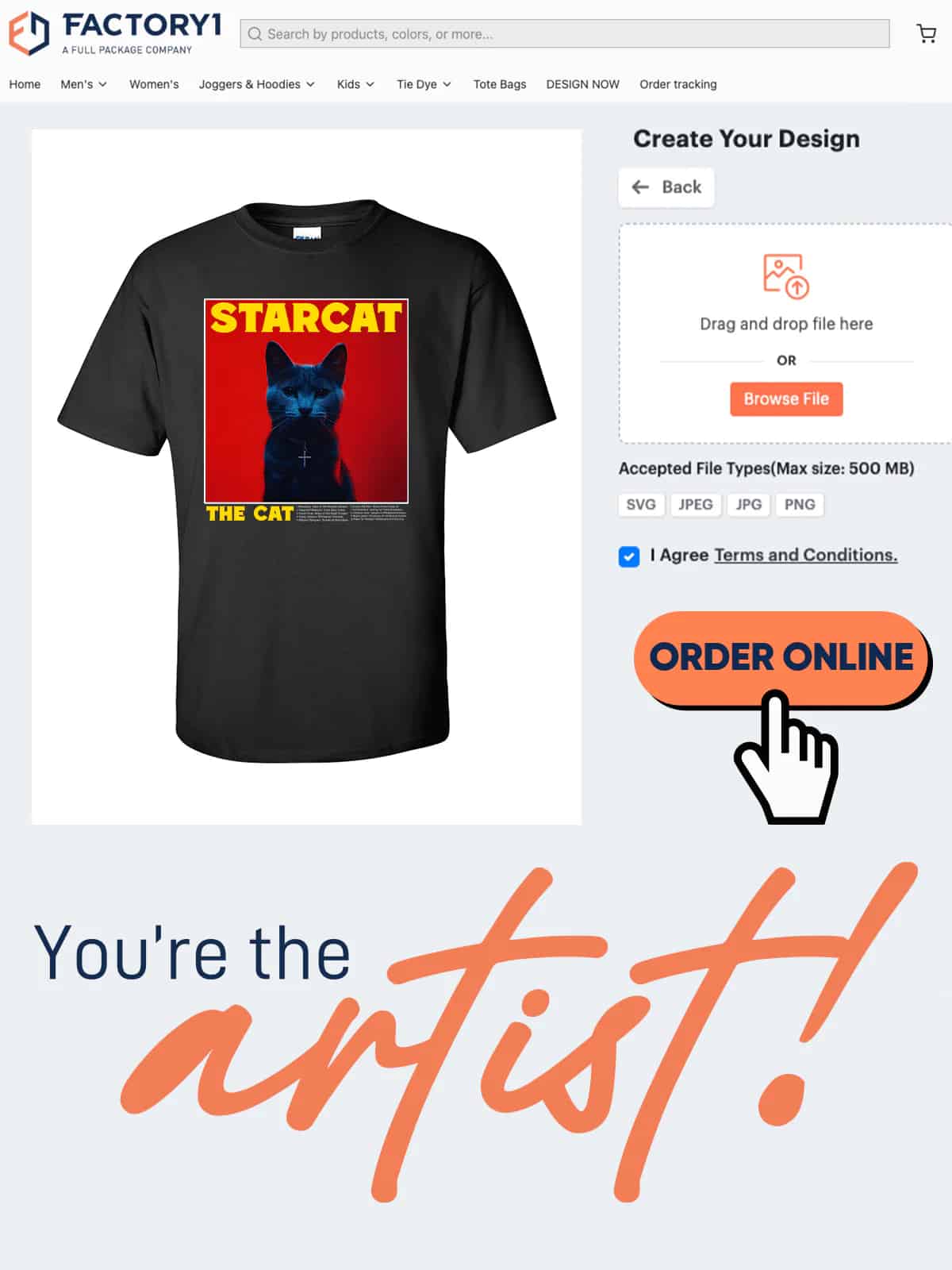 Do you already have a design that you want to bring to life? No problem! Our file upload feature allows you to simply upload your design files directly to our website. Whether it's a logo, artwork, or a complete design, our team of experts will ensure that it is faithfully reproduced on your custom t-shirts LA. We accept a variety of file formats to accommodate your needs, making it convenient for you to create your own unique t-shirt designs.